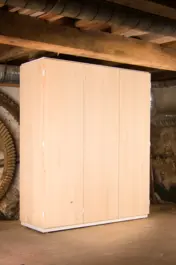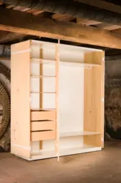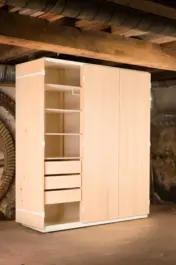 Ein Schrank als schlichte Kiste sagt der erste Blick.