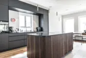 So praktisch wie harmonisch. Denn genau das muss ein zentraler Treffpunkt sein. Ohne Ecken und Kanten, damit Kinderköpfe keine Blessuren davontragen – und Erwachsene komfortabel kochen, ratschen und einfach „zusammen sein“ können.